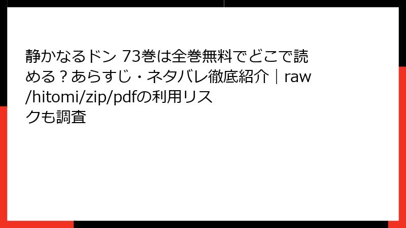 人気ヤクザ漫画『静かなるドン』の73巻を、raw、hitomi、zip、pdf、漫画バンクなどの海賊版サイトで読もうとするのは、一見手軽ですが、深刻なリスクが伴います。これらのサイトは著作権を無視した違法アップロードが多く、利用者は知らずにトラブルに巻き込まれる可能性が高いです。この記事では、法的、セキュリティ、個人情報、品質・倫理の観点からリスクを詳しく解説します。無料の魅力に負けず、安全な正規ルートを選ぶことを強くおすすめします。