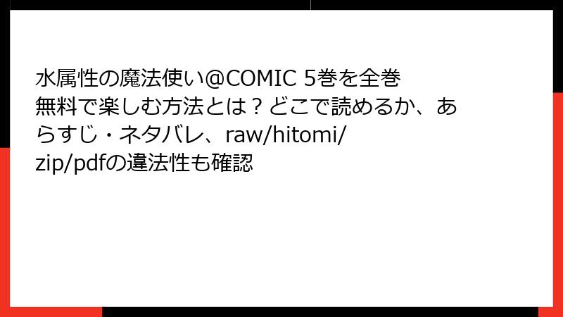 水属性の魔法使い@COMIC 5巻を全巻無料で楽しむ方法とは?どこで読めるか、あらすじ・ネタバレ、raw/hitomi/zip/pdfの違法性も確認