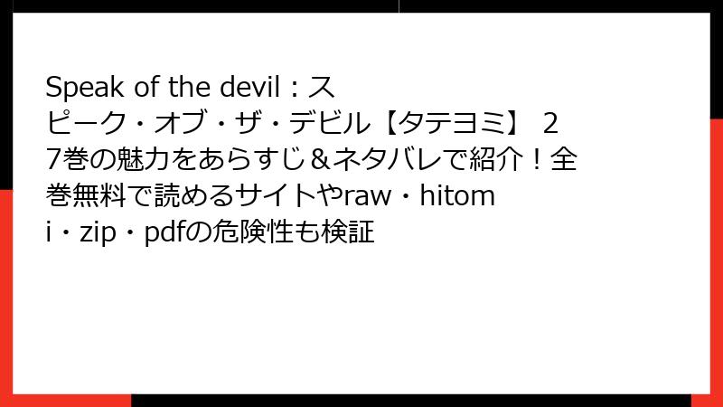 Speak of the devil:スピーク・オブ・ザ・デビル【タテヨミ】 27巻の魅力をあらすじ&ネタバレで紹介!全巻無料で読めるサイトやraw・hitomi・zip・pdfの危険性も検証