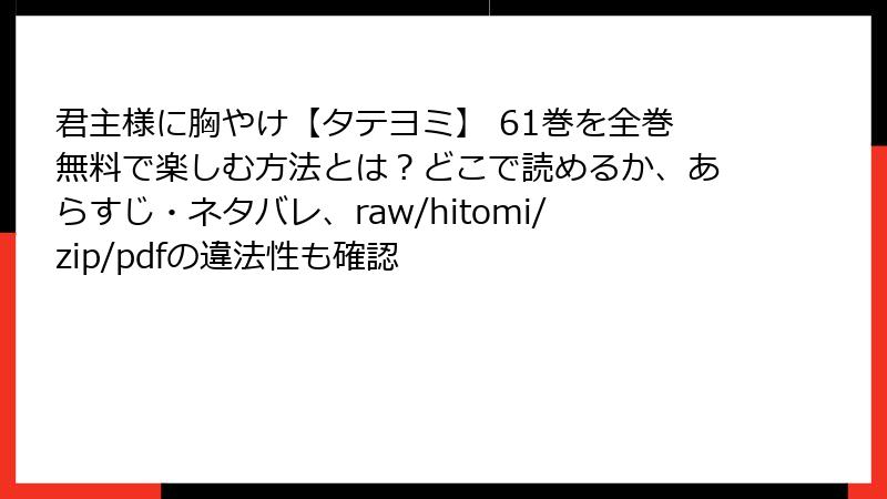 「君主様に胸やけ【タテヨミ】」のような人気漫画を、raw、hitomi、zip、pdf、漫画バンクなどの海賊版サイトで無料で読もうとする人は少なくありません。これらのサイトは、出版社や作者の許可なく漫画を無断アップロードし、閲覧やダウンロードを可能にしています。一見手軽ですが、こうした違法行為には深刻なリスクが伴います。法的罰則からセキュリティ脅威、さらには業界全体への悪影響まで、多角的に解説します。