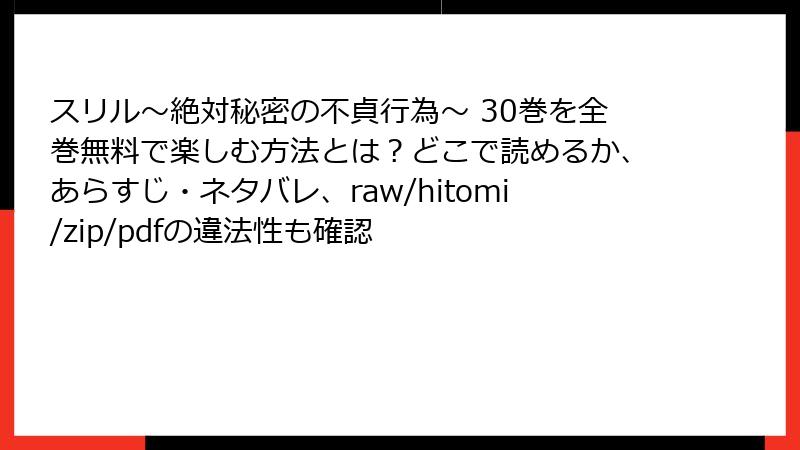 スリル~絶対秘密の不貞行為~ 30巻を全巻無料で楽しむ方法とは?どこで読めるか、あらすじ・ネタバレ、raw/hitomi/zip/pdfの違法性も確認