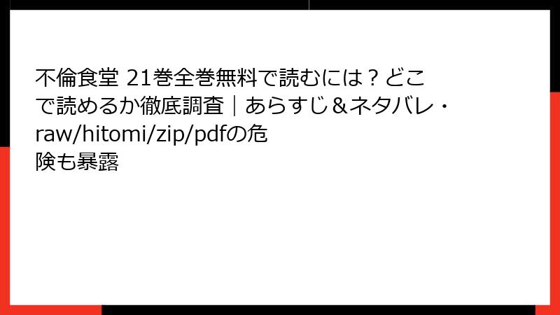 - 不倫食堂 21巻を海賊版サイトで読むリスク