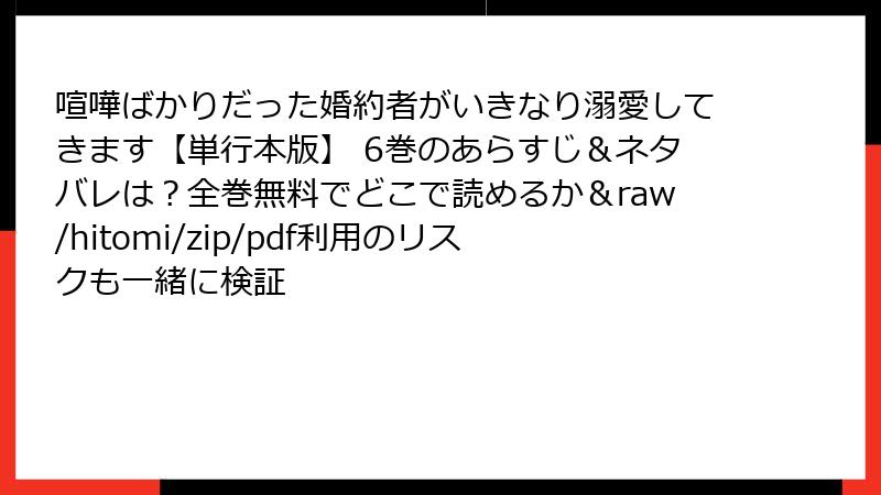 喧嘩ばかりだった婚約者がいきなり溺愛してきます【単行本版】 6巻のあらすじ&ネタバレは?全巻無料でどこで読めるか&raw/hitomi/zip/pdf利用のリスクも一緒に検証