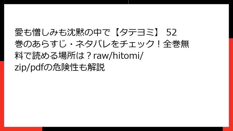 愛も憎しみも沈黙の中で【タテヨミ】 52巻を海賊版サイトで読むリスク詳解