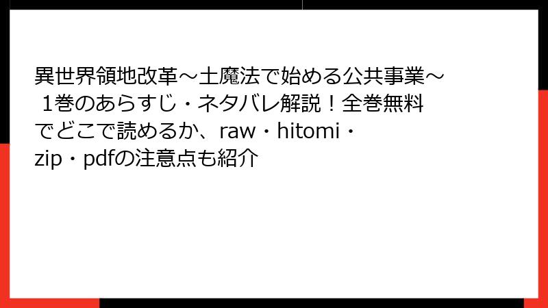 異世界領地改革の1巻は、土魔法の活用がテーマ。複数のサービスで配信。