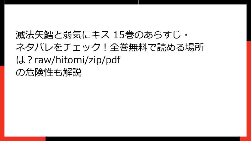 人気のオメガバースBL漫画「滅法矢鱈と弱気にキス」を、raw/hitomi/zip/pdf/漫画バンクなどの海賊版サイトで無料で読みたいと思う人は少なくないでしょう。しかし、そんな行為には深刻なリスクが伴います。この記事では、海賊版サイトを利用する際のさまざまな危険性を詳しく解説します。法的問題からセキュリティの脅威、さらには倫理的な側面まで、幅広く掘り下げてお伝えします。海賊版の誘惑に負けないよう、事前に知っておくべき情報をまとめました。