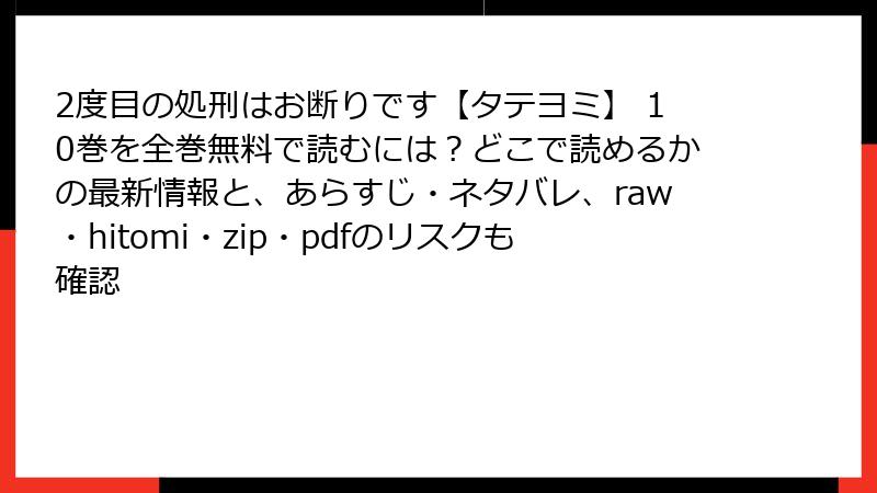 の見出しタグから始めて、ブログ記事形式で出力して。複数の タグを使用して、読み応えがあるように。HTMLで出力。 や などの箇条書きのHTMLタグや、tableタグも使用してOK。ただし、リンクやURLは、絶対に、挿入しない。 この漫画・コミックを、raw/hitomi/zip/pdf/漫画バンクなどの海賊版サイトで読むことのリスクを、詳しく。単一の の見出しタグから始めて、ブログ記事形式で出力して。複数の タグを使用して、読み応えがあるように。HTMLで出力。 や などの箇条書きのHTMLタグや、tableタグも使用してOK。ただし、リンクやURLは、絶対に、挿入しない。 2度目の処刑はお断りです【タテヨミ】を海賊版サイトで読むリスク