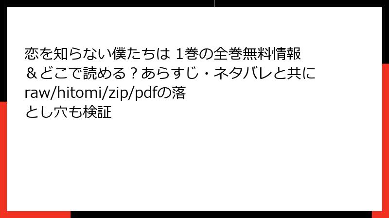 人気少女漫画『恋を知らない僕たちは』を、raw、hitomi、zip、pdf、漫画バンクなどの海賊版サイトで無料で読もうとする人は少なくありません。しかし、これらのサイトは著作権を侵害した違法なもので、利用には深刻なリスクが伴います。この記事では、そんな海賊版サイトの利用がもたらす法的、セキュリティ、倫理的な危険性を詳しく解説します。無料の誘惑に負けず、正規ルートを選ぶ重要性を理解しましょう。