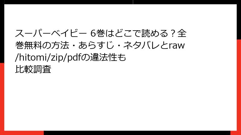 スーパーベイビー 6巻を海賊版サイトで読むリスクを詳しく解説