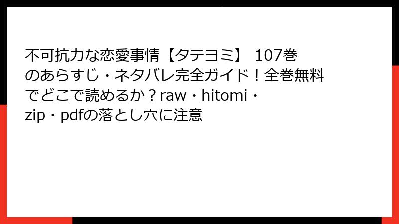 人気BL漫画「不可抗力な恋愛事情【タテヨミ】」を、raw、hitomi、zip、pdf、漫画バンクなどの海賊版サイトで無料で読みたいと思う人もいるかもしれません。しかし、これらのサイトを利用することは多大なリスクを伴います。本記事では、日本国内の法規制や実例を基に、海賊版サイトの危険性を詳しく解説します。無料の誘惑に負けず、正規ルートで楽しむことを強くおすすめします。海賊版利用は、単なる違法行為を超えた深刻な問題を引き起こす可能性があります。