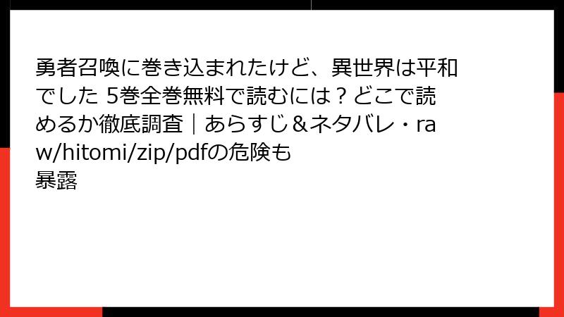 勇者召喚に巻き込まれたけど、異世界は平和でした をraw/hitomi/zip/pdf/漫画バンクなどの海賊版サイトで読むリスク詳解