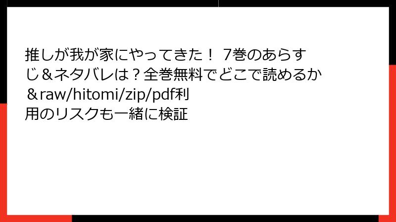 人気漫画「推しが我が家にやってきた!」を、raw、hitomi、zip、pdf、漫画バンクなどの海賊版サイトで読むのは、手軽に思えるかもしれませんが、さまざまなリスクが伴います。これらのサイトは著作権を侵害した違法コンテンツを提供しており、利用者は知らず知らずのうちに問題に巻き込まれる可能性があります。ここでは、そのリスクを法的、セキュリティ、品質、倫理的側面から詳しく解説します。