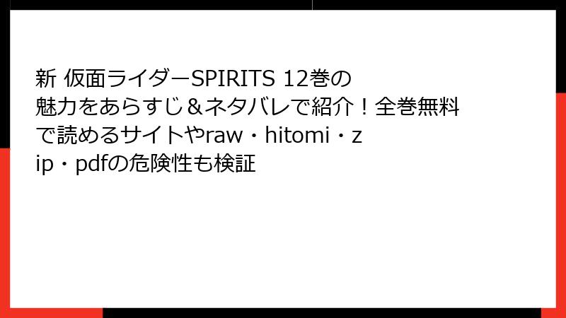 海賊版サイトのリスクは一時的な無料の利便性を上回るものです。『新 仮面ライダーSPIRITS 12巻』を正しく楽しむために、法的・安全な方法を選びましょう。
