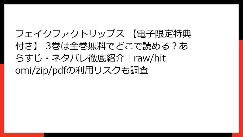 3. 海賊版サイトで漫画を読むリスク:フェイクファクトリップス 3巻をraw/hitomi/zip/pdf/漫画バンクなどで閲覧する危険性
