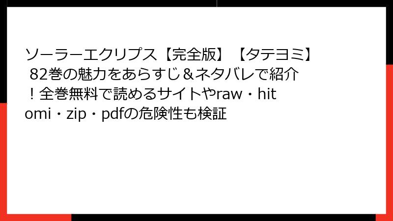 ソーラーエクリプス【完全版】【タテヨミ】 82巻を海賊版サイトで読むリスク