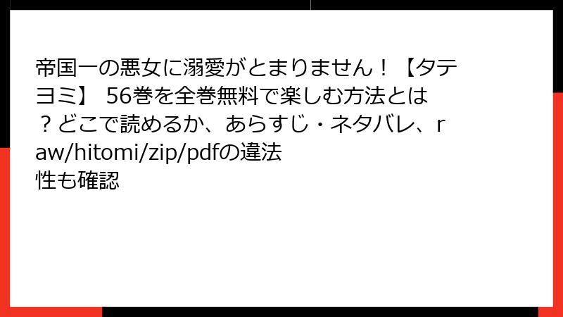 人気タテヨミコミック「帝国一の悪女に溺愛がとまりません!」を楽しむ方法として、海賊版サイト(raw、hitomi、zip、pdf、漫画バンクなど)が挙げられることがありますが、これらを利用する際のリスクは無視できません。この記事では、そんな海賊版サイトで読むことの潜在的な危険性をブログ形式で詳しく解説します。法的問題からセキュリティの脅威、倫理的な側面までを掘り下げ、なぜ正規ルートをおすすめするのかを考察します。海賊版は一見無料で便利ですが、長期的に見て損失が大きいことを理解しましょう。