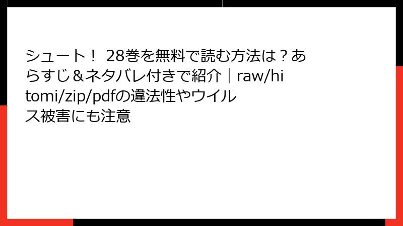 シュート! 28巻を無料で読む方法は?あらすじ&ネタバレ付きで紹介|raw/hitomi/zip/pdfの違法性やウイルス被害にも注意