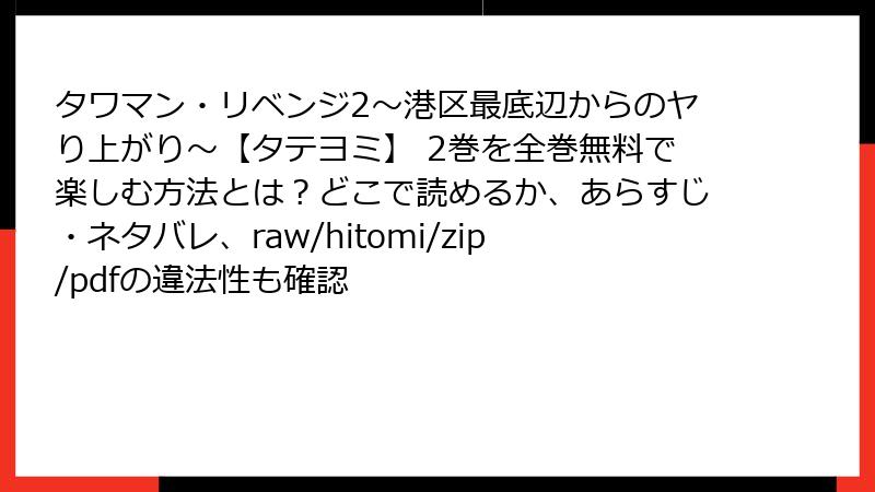 タワマン・リベンジ2~港区最底辺からのヤり上がり~【タテヨミ】 2巻を全巻無料で楽しむ方法とは?どこで読めるか、あらすじ・ネタバレ、raw/hitomi/zip/pdfの違法性も確認
