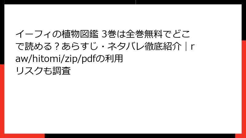 イーフィの植物図鑑 3巻をraw/hitomi/zip/pdf/漫画バンクなどの海賊版サイトで読むリスク:法的・セキュリティ面の危険性