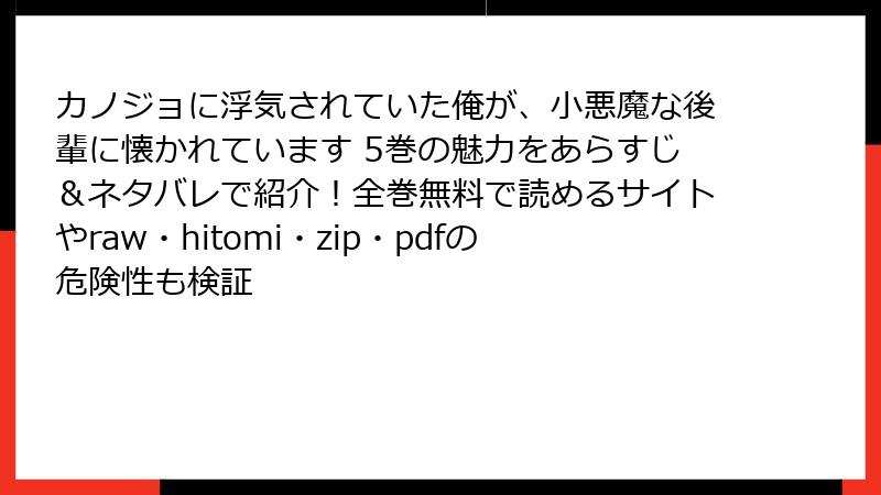 raw、hitomi、zip、pdf、漫画バンクなどの海賊版サイトは、無料で漫画やコミックを提供するように見えますが、これらは著作権を無視した違法アップロードがほとんどです。こうしたサイトで「カノジョに浮気されていた俺が、小悪魔な後輩に懐かれています」などの人気作品を読むのは一見手軽ですが、隠れたリスクが山積みです。魅力的に感じる無料アクセスは、法的・セキュリティ的な問題を引き起こす可能性が高く、長期的に見て損失が大きいのです。本記事では、これらのリスクを詳しく解説します。
