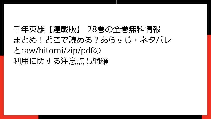 千年英雄【連載版】 28巻の全巻無料情報まとめ!どこで読める?あらすじ・ネタバレとraw/hitomi/zip/pdfの利用に関する注意点も網羅