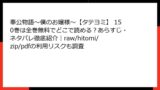 • LINEマンガ: 配信なし。LINEポイント連携が便利ですが、検索でヒットしませんでした。