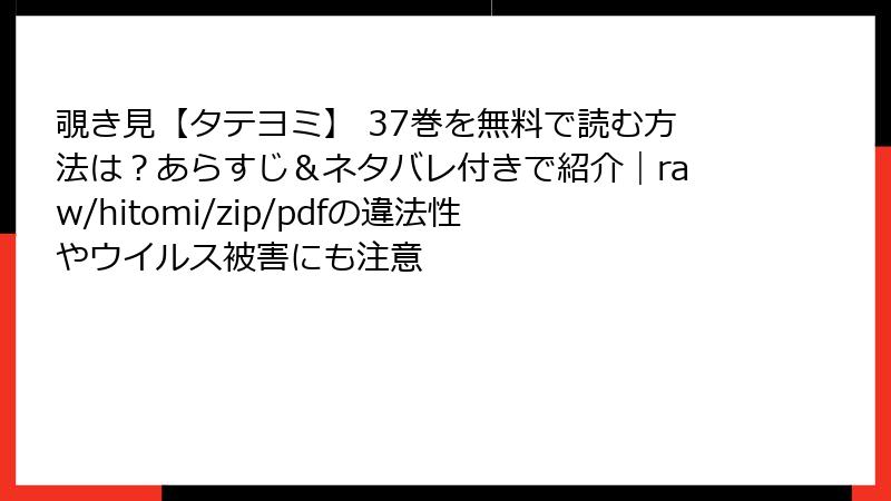 覗き見【タテヨミ】 37巻を無料で読む方法は?あらすじ&ネタバレ付きで紹介|raw/hitomi/zip/pdfの違法性やウイルス被害にも注意