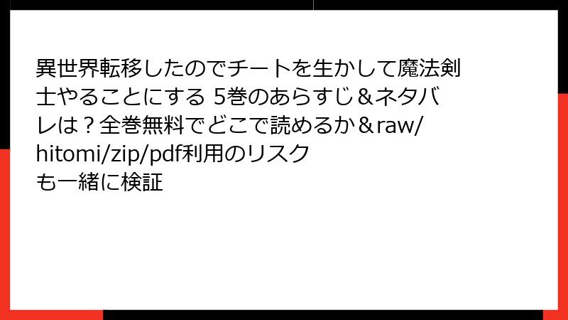 こんにちは、異世界ファンタジー大好きブロガーです! 今回は、進行諸島原作の人気コミック『異世界転移したのでチートを生かして魔法剣士やることにする』の第5巻について、じっくりとあらすじを掘り下げてお届けします。この作品は、チート級の能力で無双する主人公の爽快感が魅力の冒険譚。第5巻では、遺跡の謎と町の闇が交錯する、緊張感あふれる展開が繰り広げられます。ネタバレを交えつつ、読み応え満点でお伝えするので、未読の方はご注意を。さあ、規格外の魔法剣士たちの活躍を一緒に振り返りましょう!