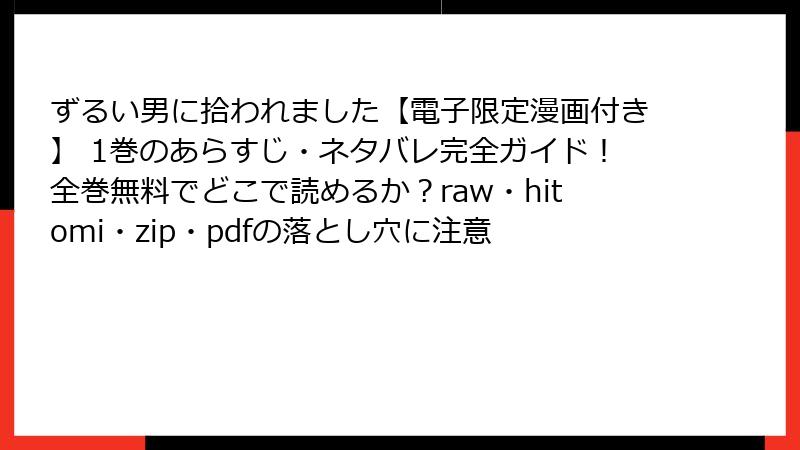 ずるい男に拾われました【電子限定漫画付き】 1巻のあらすじ・ネタバレ完全ガイド!全巻無料でどこで読めるか?raw・hitomi・zip・pdfの落とし穴に注意