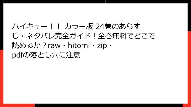 ハイキュー!! カラー版 24巻のあらすじ・ネタバレ完全ガイド!全巻無料でどこで読めるか?raw・hitomi・zip・pdfの落とし穴に注意