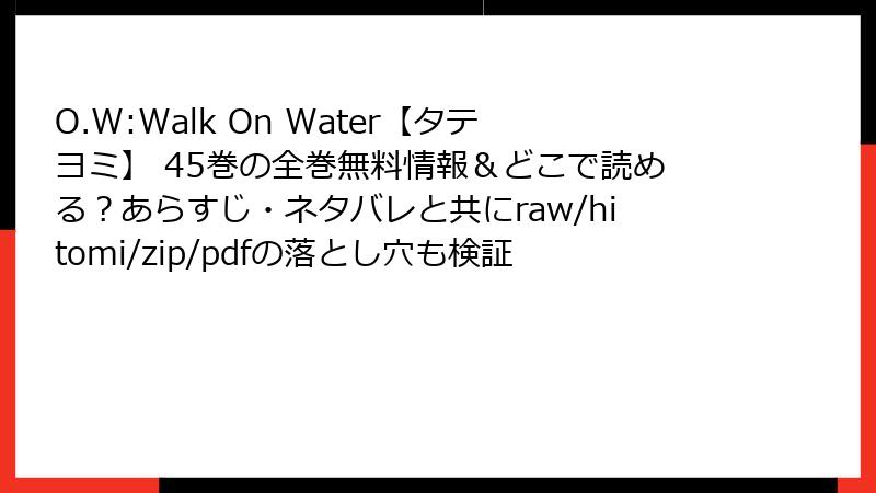 O.W:Walk On Water【タテヨミ】 45巻の全巻無料情報&どこで読める?あらすじ・ネタバレと共にraw/hitomi/zip/pdfの落とし穴も検証