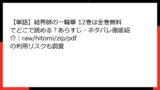 - zip/pdf: 圧縮ファイル形式で一括ダウンロード。漫画バンクのようなサイトでよく見られるが、ファイル内にマルウェアが仕込まれやすい。
