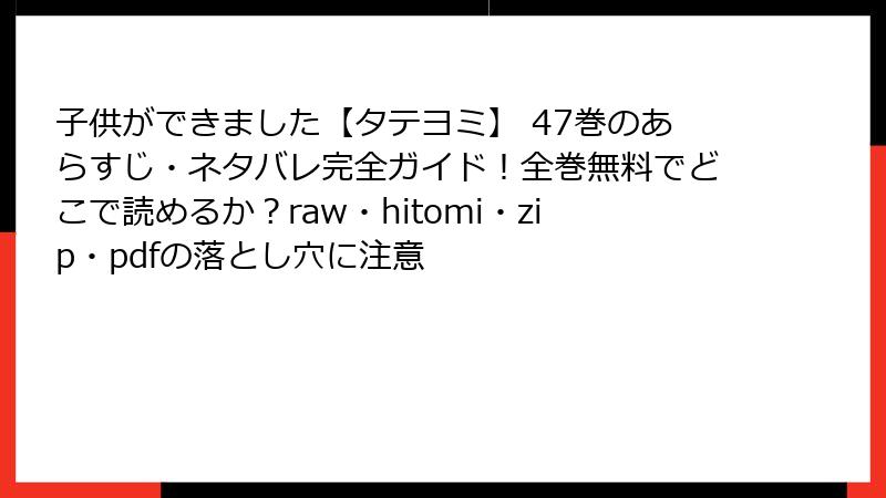 以上のように、海賊版サイトで「子供ができました【タテヨミ】」を読むリスクは多岐にわたり、法的罰則からセキュリティ脅威、倫理的ジレンマまで及びます。これらを避けるためには、公式アプリや電子書籍ストアを利用し、作者を支援する道を選ぶのが賢明です。短期的な無料の誘惑に負けず、持続可能なマンガ文化を支えましょう。