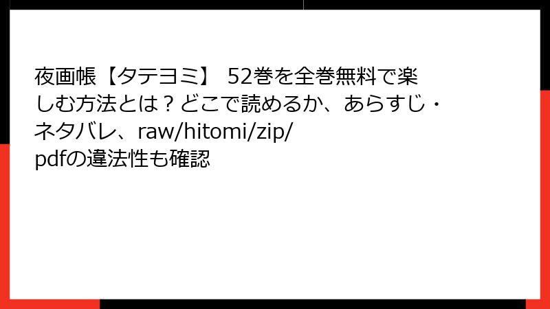 raw/hitomi/zip/pdf/漫画バンクなどで「夜画帳」を読むリスクは、法的処罰、セキュリティ被害、詐欺、倫理的問題と多岐にわたります。これらを避けるため、正規の電子書籍サービスを利用しましょう。無料試し読みや割引キャンペーンを活用すれば、安全に楽しめます。海賊版の誘惑に負けず、賢い選択を。