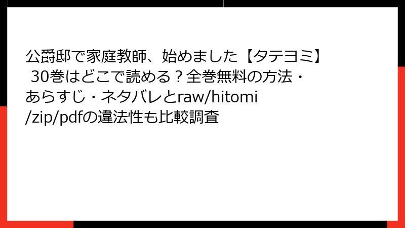 公爵邸で家庭教師、始めました【タテヨミ】をraw/hitomi/zip/pdf/漫画バンクなどの海賊版サイトで読むリスク