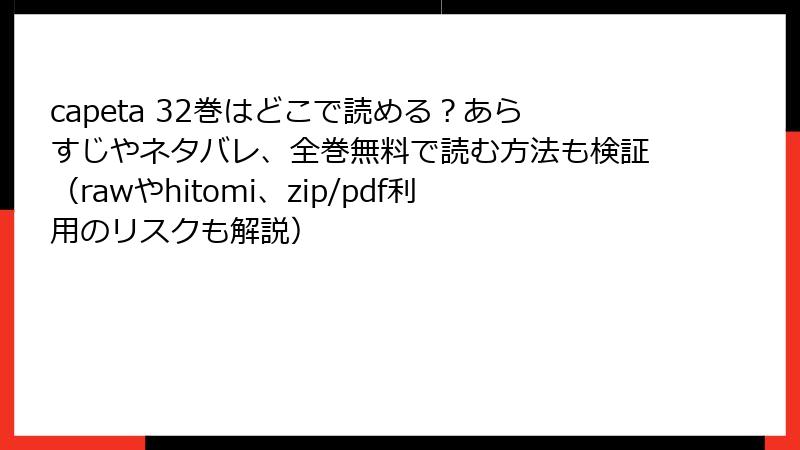 『capeta』32巻は、7つのサービスで即配信中。総額21,120円の全巻が、キャンペーン次第で半額近くに! 父・信夫の夢のように、あなたの読書ライフも加速させる一冊です。どのサービスから始める? コメントで教えてくださいね。次回は全巻お得購入術の深掘りをお届けします。