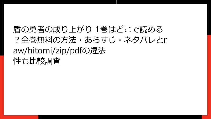 盾の勇者の成り上がり 1巻はどこで読める?全巻無料の方法・あらすじ・ネタバレとraw/hitomi/zip/pdfの違法性も比較調査