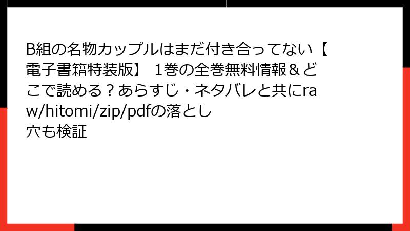 B組の名物カップルはまだ付き合ってない【電子書籍特装版】 1巻のレビュー・口コミ・評判詳解