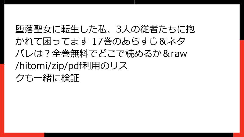堕落聖女に転生した私、3人の従者たちに抱かれて困ってます 17巻を海賊版サイトで読むリスク詳解