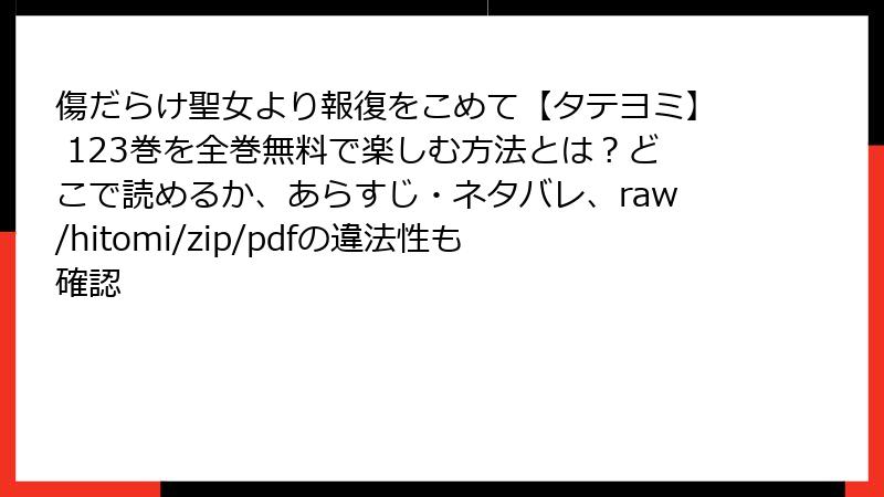 人気の復讐ファンタジー漫画「傷だらけ聖女より報復をこめて【タテヨミ】」を、raw、hitomi、zip、pdf、漫画バンクなどの海賊版サイトで無料で読もうとする人は少なくありません。しかし、これらのサイトを利用することは、単に違法なだけでなく、さまざまな深刻なリスクを伴います。この記事では、海賊版サイトの利用がもたらす法的、セキュリティ、プライバシー、倫理的・経済的な危険性を詳しく解説します。海賊版サイトは著作権侵害の温床となり、利用者が知らず知らずのうちに被害者になる可能性が高いのです。以下で具体的に見ていきましょう。