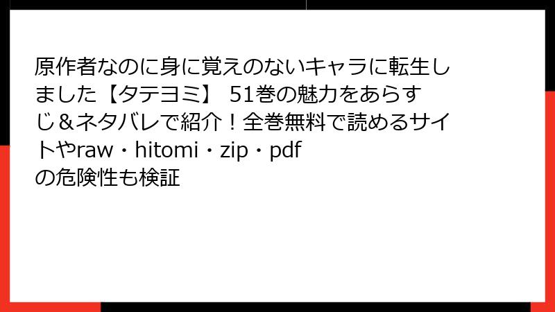 人気のウェブコミック「原作者なのに身に覚えのないキャラに転生しました【タテヨミ】」は、公式プラットフォームで楽しむのが理想ですが、一部の人々がraw、hitomi、zip、pdf、漫画バンクなどの海賊版サイトを利用しようとするケースがあります。これらのサイトは、著作権者の許可なく作品を無断アップロード・配信する違法なもので、利用者はさまざまなリスクにさらされます。2021年の著作権法改正により、規制が厳しくなった日本国内では、特に注意が必要です。以下で、法的、セキュリティ、経済的・倫理的な観点から詳しく解説します。