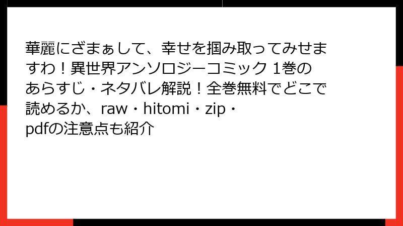 華麗にざまぁして、幸せを掴み取ってみせますわ!異世界アンソロジーコミック 1巻のあらすじ・ネタバレ解説!全巻無料でどこで読めるか、raw・hitomi・zip・pdfの注意点も紹介