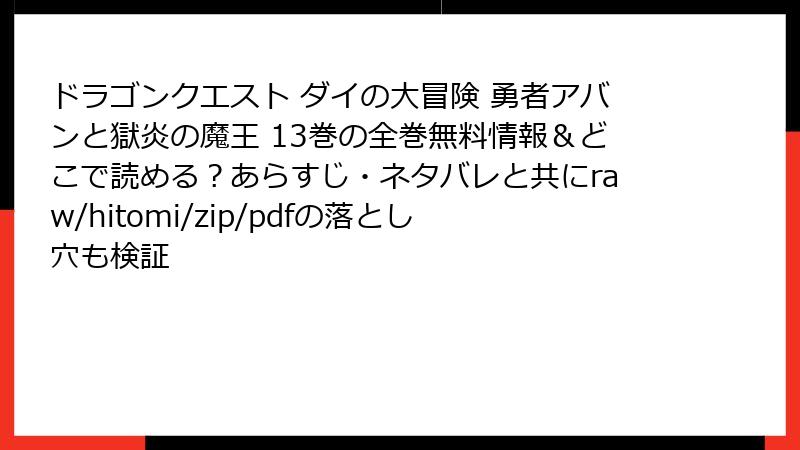 ドラゴンクエスト ダイの大冒険 勇者アバンと獄炎の魔王 13巻を海賊版サイトで読むリスク