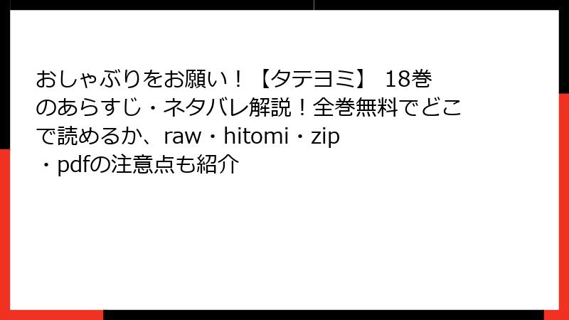 raw、hitomi、zip、pdf、漫画バンクなどの海賊版サイトで「おしゃぶりをお願い!【タテヨミ】」を読むのは、法的・セキュリティ・プライバシー・倫理的リスクが大きすぎます。代わりに正規の電子書籍サービスやアプリを利用しましょう。これらはウイルスフリーで高品質、作者をサポートできます。リスクを避け、安心して漫画を楽しむことが一番です。違法サイトの誘惑に負けず、正しい選択を。