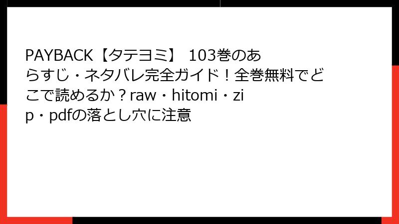 まとめると、「PAYBACK【タテヨミ】」をrawやhitomiなどで読むのは、法的罰則、セキュリティ脅威、業界への悪影響という多大なリスクを伴います。無料の誘惑に負けず、安全な方法で楽しむことを強くおすすめします。