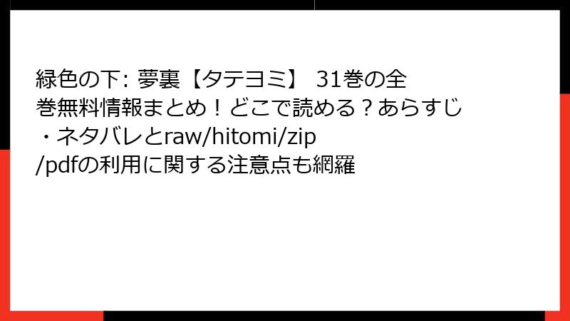 緑色の下: 夢裏【タテヨミ】 31巻の全巻無料情報まとめ!どこで読める?あらすじ・ネタバレとraw/hitomi/zip/pdfの利用に関する注意点も網羅