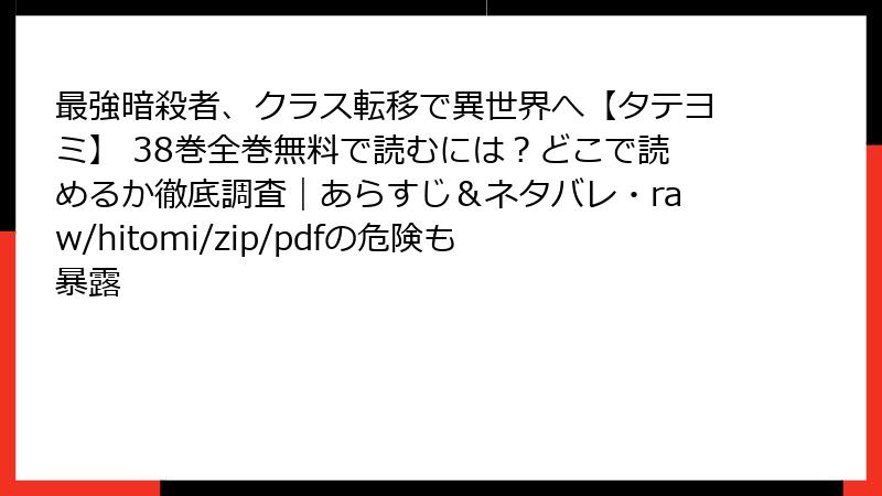 最強暗殺者、クラス転移で異世界へ【タテヨミ】をraw/hitomi/zip/pdf/漫画バンクなどの海賊版サイトで読むリスク