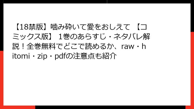 【18禁版】噛み砕いて愛をおしえて 【コミックス版】 1巻のあらすじ・ネタバレ解説!全巻無料でどこで読めるか、raw・hitomi・zip・pdfの注意点も紹介