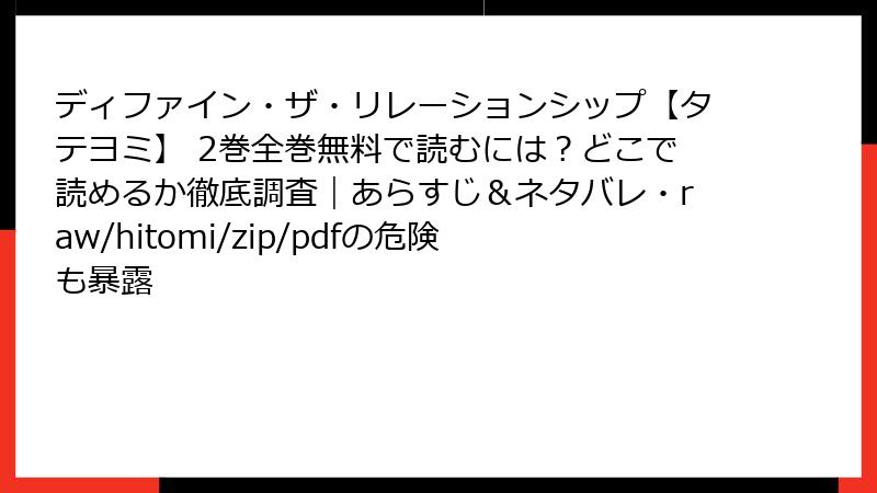 人気のBL漫画「ディファイン・ザ・リレーションシップ【タテヨミ】」の2巻を、raw、hitomi、zip、pdf、漫画バンクなどの海賊版サイトで読むのは魅力的かもしれませんが、実は深刻なリスクが伴います。この記事では、そうした違法サイトを利用する危険性を詳しく解説します。法的問題からセキュリティの脅威、さらには業界全体への影響までを掘り下げます。海賊版を避け、正規ルートで楽しむことを強くおすすめします。