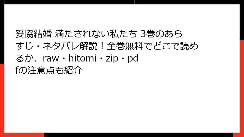 妥協結婚 満たされない私たち 3巻のあらすじ・ネタバレ解説!全巻無料でどこで読めるか、raw・hitomi・zip・pdfの注意点も紹介